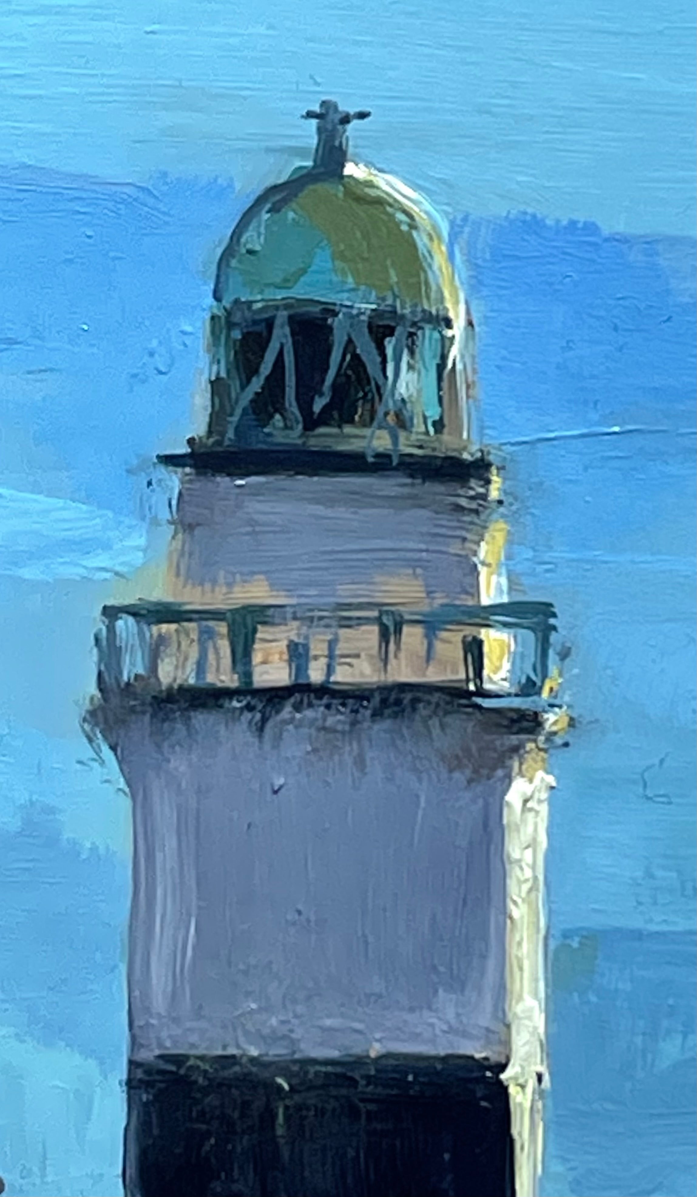 A sailboat passing the lighthouse at Cloch Point on the Firth of Clyde.