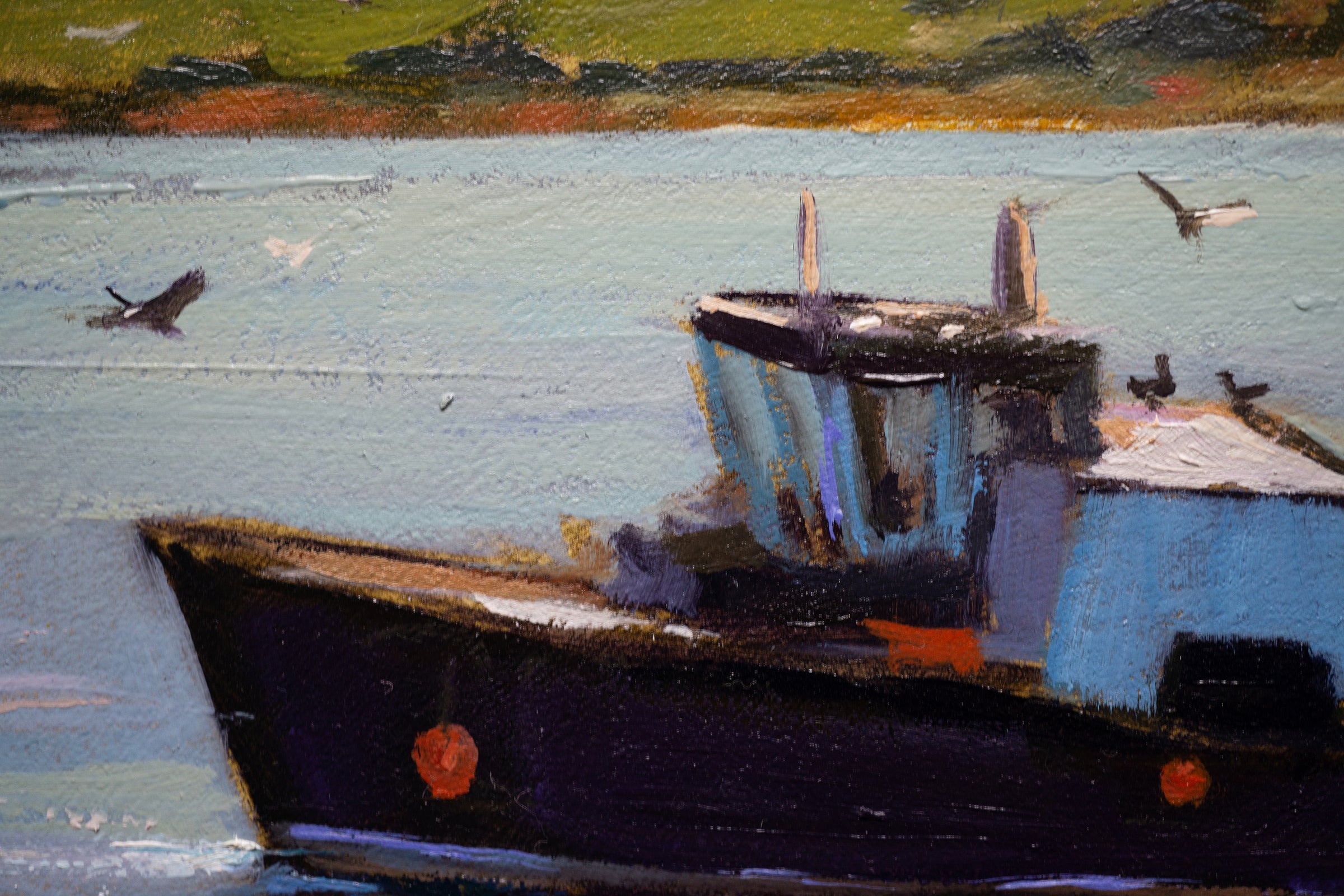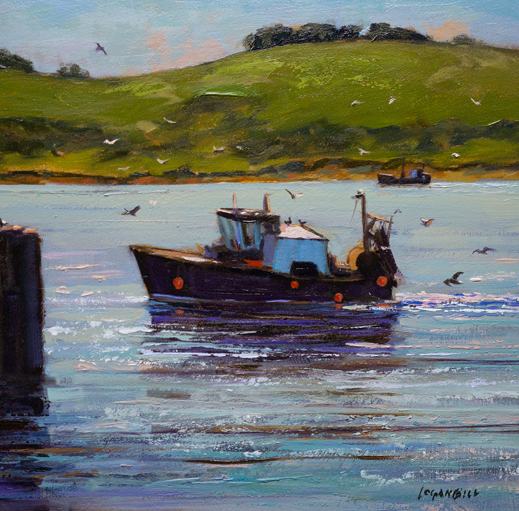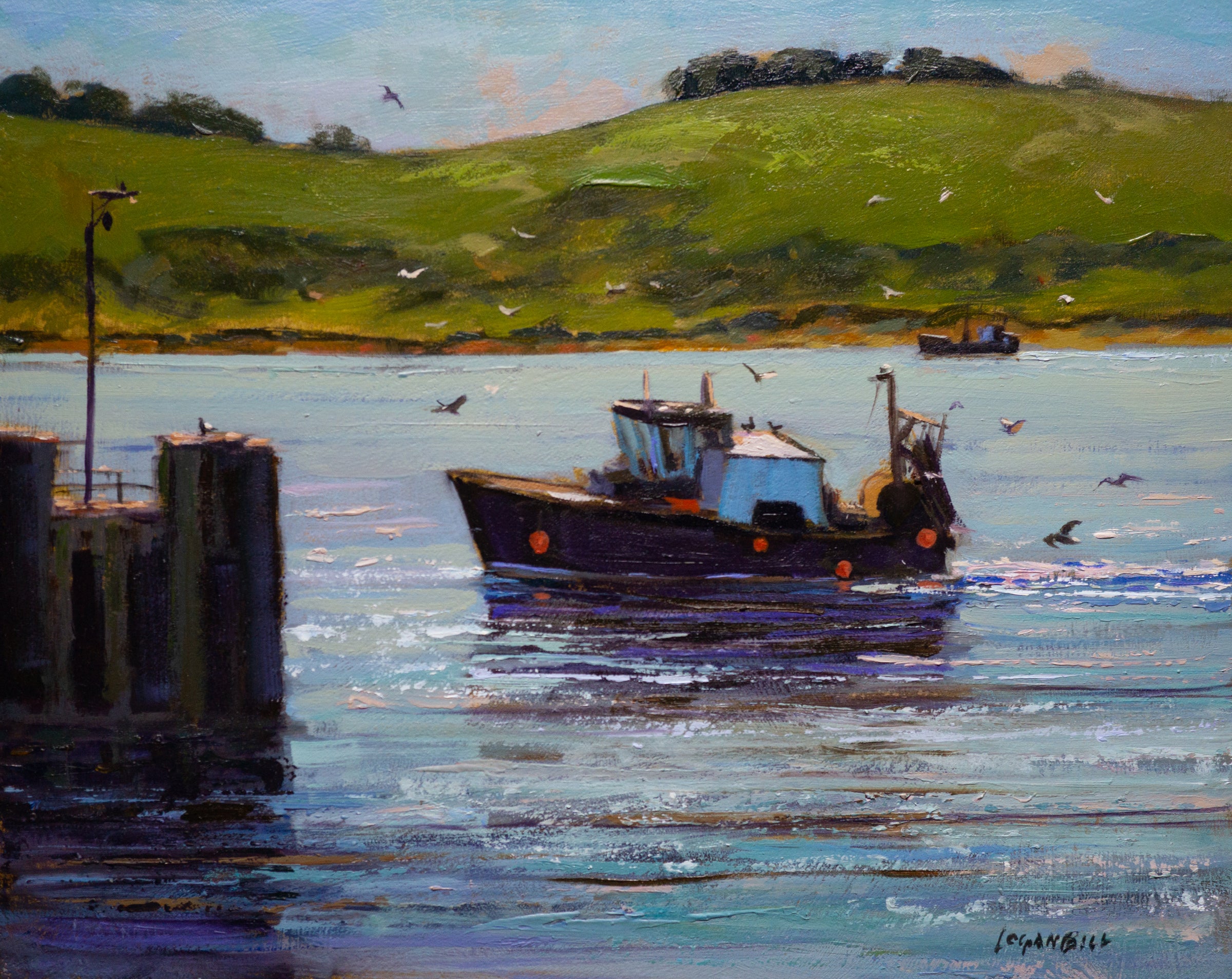 A small lobster boat coming back into the harbour at Tarbert after an early start.